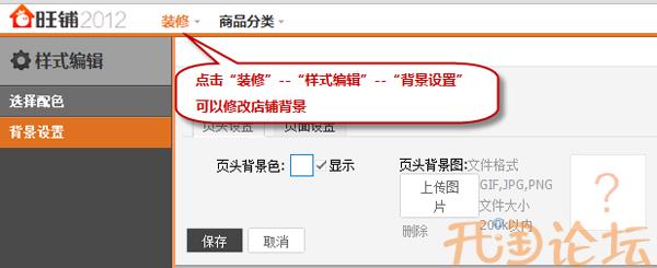 樂創(chuàng)教程針對新旺鋪如何進行“背景修改”,請參照下圖步驟:點擊”裝修“--”樣式編輯“--&r...